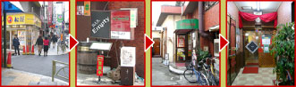 ●赤いPICKEENOOのかんばんが左に見えてきます